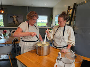 Kaasmaken kan gewoon in je eigen keuken! Dat leer je tijdens een kaasworkshop bij de Kookweide. Boerin Nicole leert je de basis principes van kaasmaken op keukenniveau, dus met materialen die je veelal in eigen keuken gebruikt. Met verse rauwe melk van onze eigen koeien maken we in ongeveer vier uur tijd een eigen kaasje. Je kiest zelf: een gele Gouda boerenkaas of een gekruid boerenborrelkaasje. Aan het einde van de workshop neem je het ronde kaasje mee naar huis. Je krijgt een uitgebreid recept met praktische tips en kaascoating mee. Nog een paar weken laten rijpen en vertroetelen en dan.... klaar is kaas!
